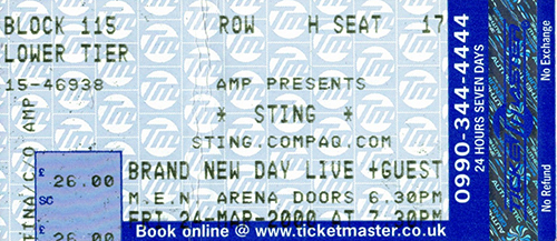 1996: Sting performed at the Valbyhallen in Copenhagen, Denmark.